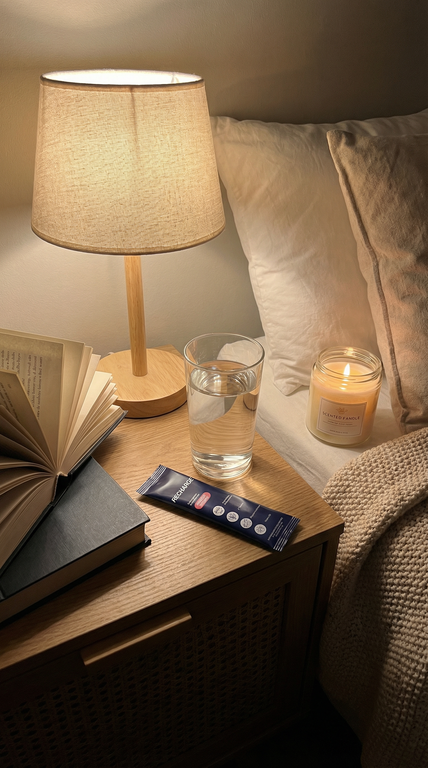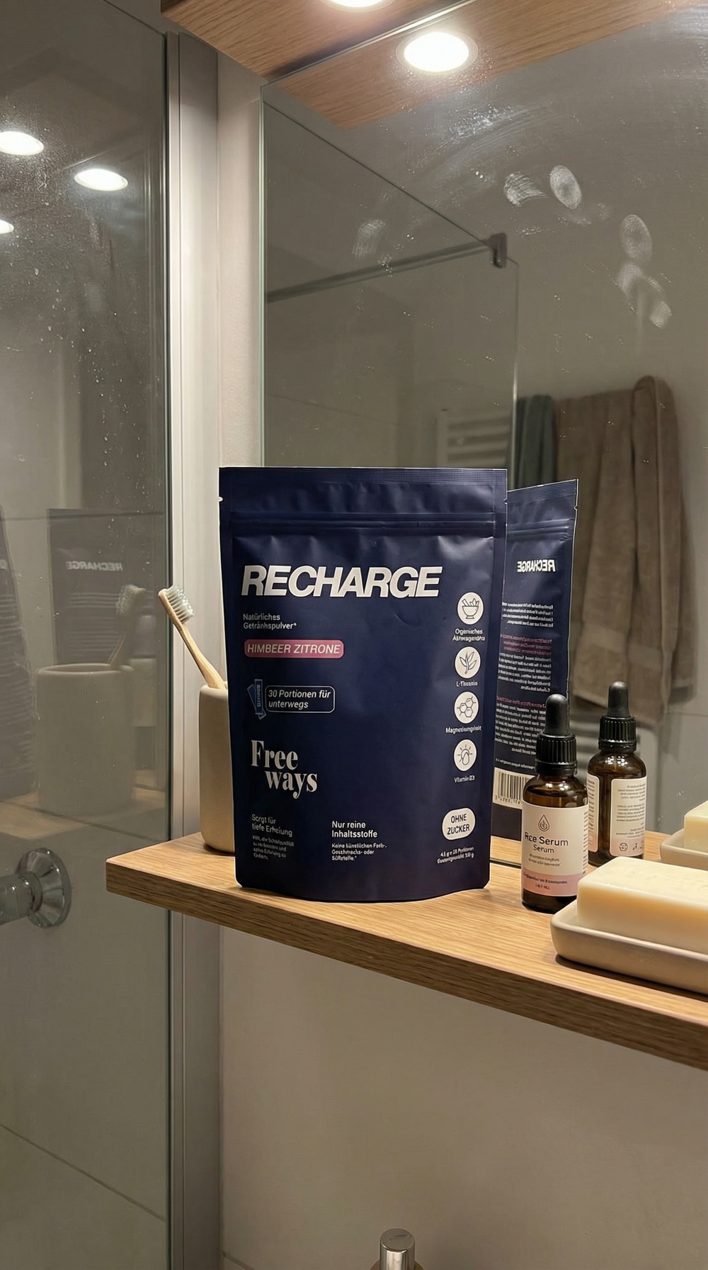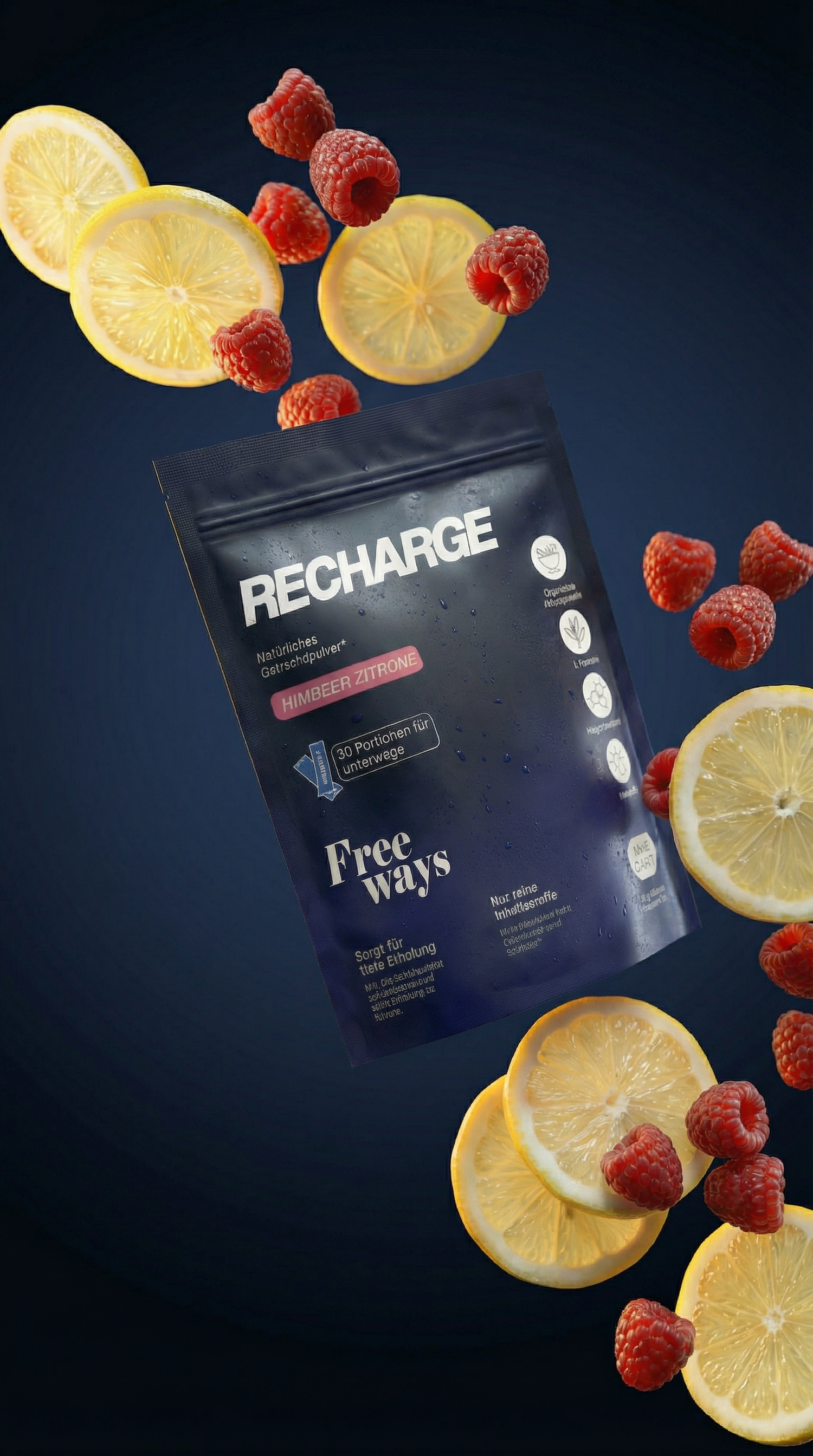 Recharge kombiniert vier sorgfältig ausgewählte Wirkstoffe – organische Aminosäuren, L-Theanin, Magnesiumglycinat und Vitamin D3. Diese Mischung unterstützt den Körper dabei, abends leichter zur Ruhe zu kommen, den Stress des Tages loszulassen und eine harmonische Schlafvorbereitung zu fördern. Der Fokus liegt auf natürlicher Entspannung und nächtlicher Regeneration.